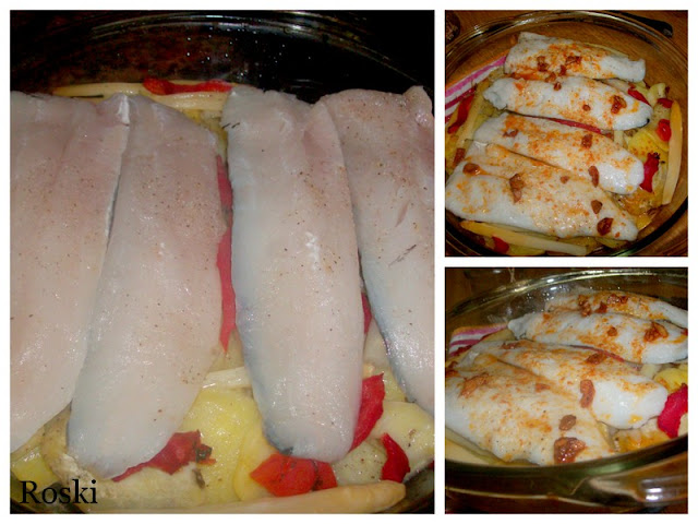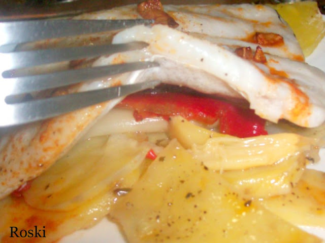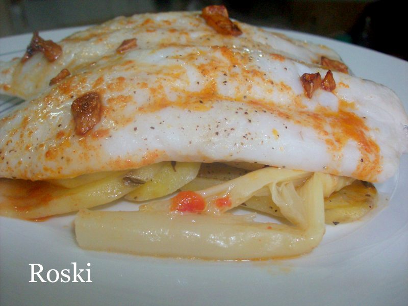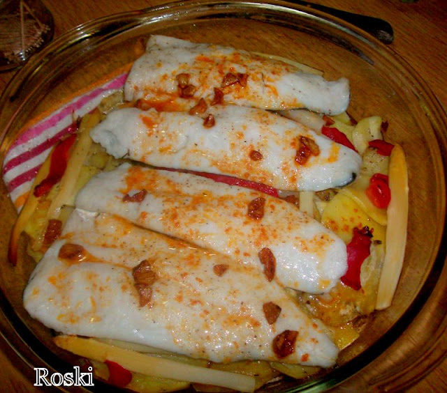 Patatas y filetes de merluza y vale para una receta ligera para prepararnos para la " comilona." que nos espera estes días.