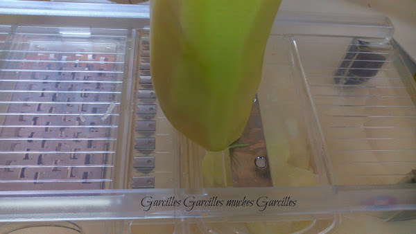 Pelar las patatas y con ayuda de una mandolina cortarlas en panadera