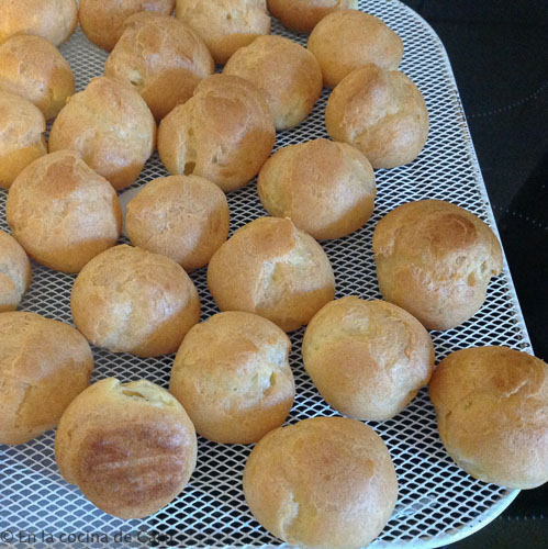 No debemos abrir el horno durante la cocción, porque se bajan, si los choux son más pequeños nos llevarán un poco menos de tiempo, pero es importante que queden bien secos.