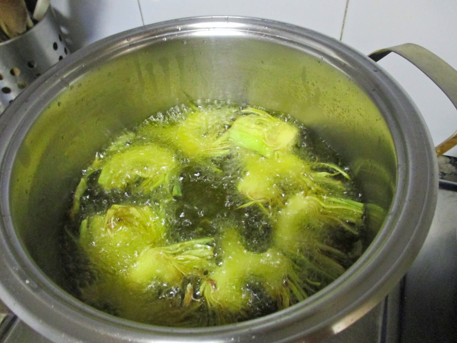 De guarnición le he puesto unas alcachofas cortadas muy finas y fritas en abundante aceite de oliva caliente o a la plancha