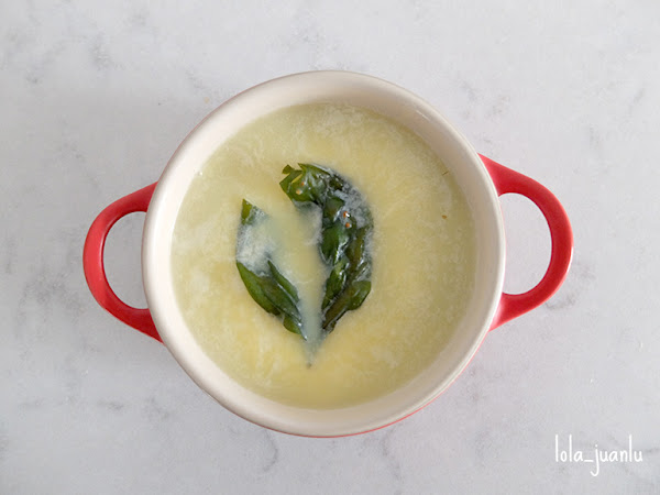Ponemos el cazo, con el suero de mantequilla, a fuego medio y agregamos unas hojas de orégano, cuando las hojas se vuelvan crujientes quitamos la sartén del fuego. Esto hará que el suero de mantequilla adquiera el aroma y sabor del orégano.