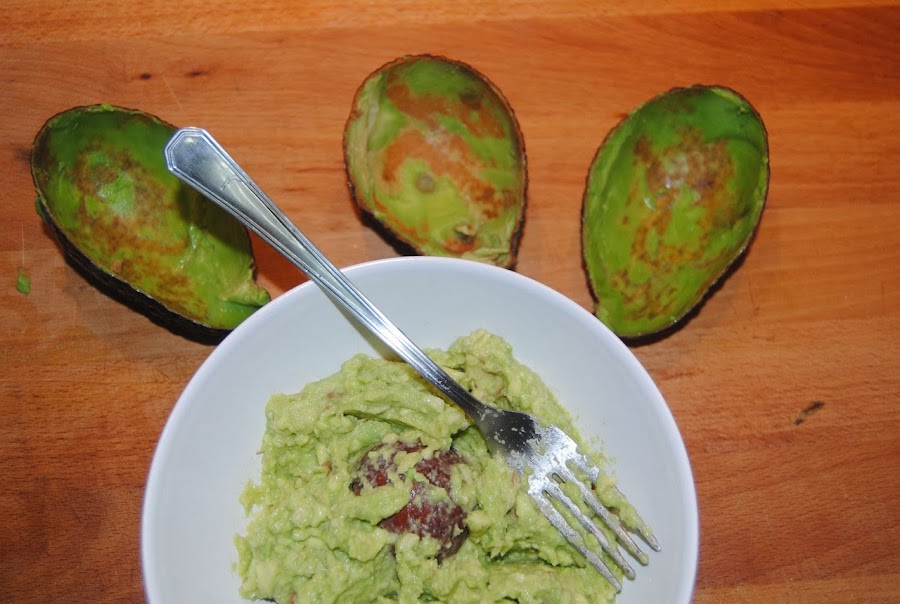 Con una cuchara vaciaremos en un bol la carne del aguacate y lo trituraremos bien con un tenedor hasta que se forme un puré.