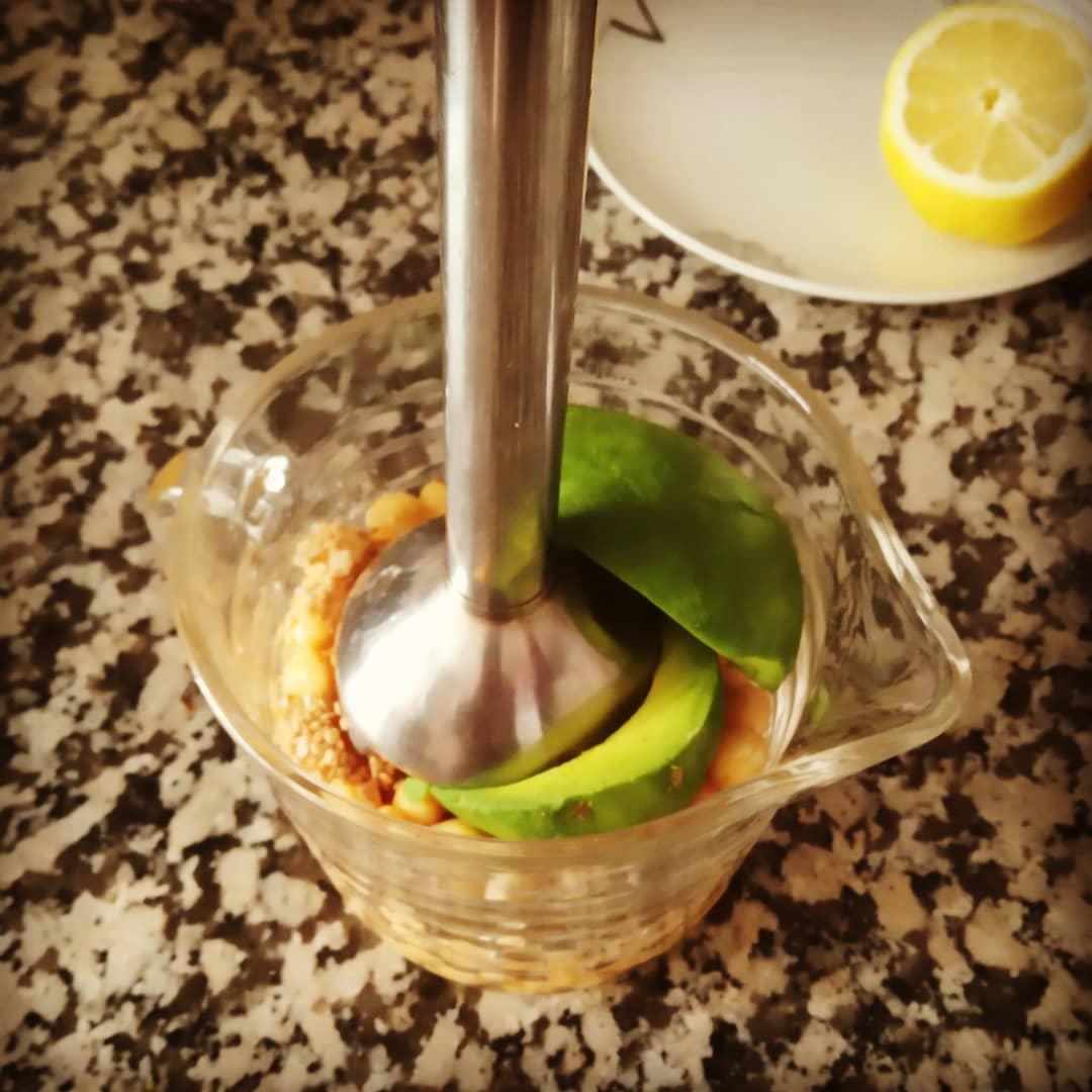 Triturar todos los ingredientes (turmix). Si está muy espeso añadir un poco de líquido de los garbanzos.