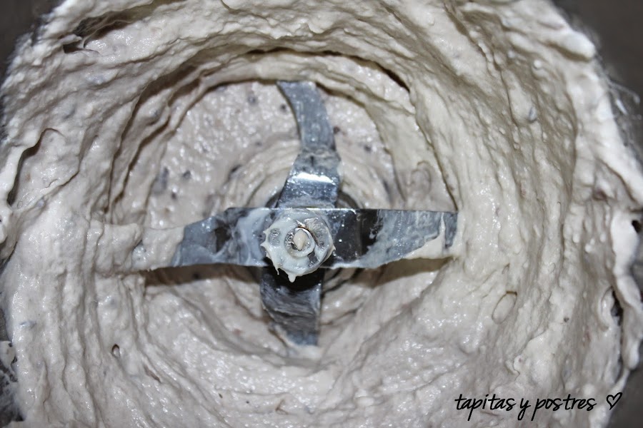 Si lo hacemos con la batidora, el procedimiento es igual, todo al vaso y triturar