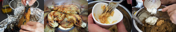 Pelarlas con cuidado de no quemarse y colocarlasen un bol o plato hondo. Chafarlas con ayuda de un tenedor hasta obtener una textura gruesa (no queremos un puré fino y homogéneo).