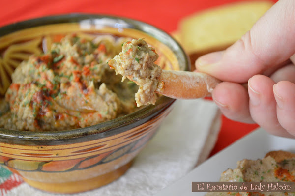 Antes de servir añade por encima un poco de pimentón y un buen chorro de aceite de oliva virgen extra y acompáñalo con cualquier tipo de pan, pita, bastoncillos, nachos, etc. que más te guste.