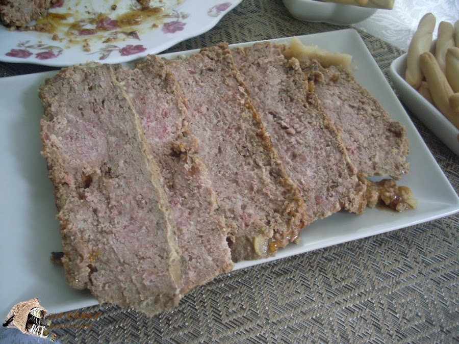 Una mesa repleta de quesos, panes hermosas y este magnífico paté presidiendo el centro