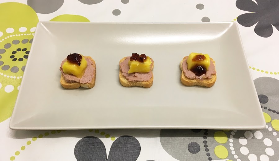 - Coloca un trozo de mango sobre el paté.