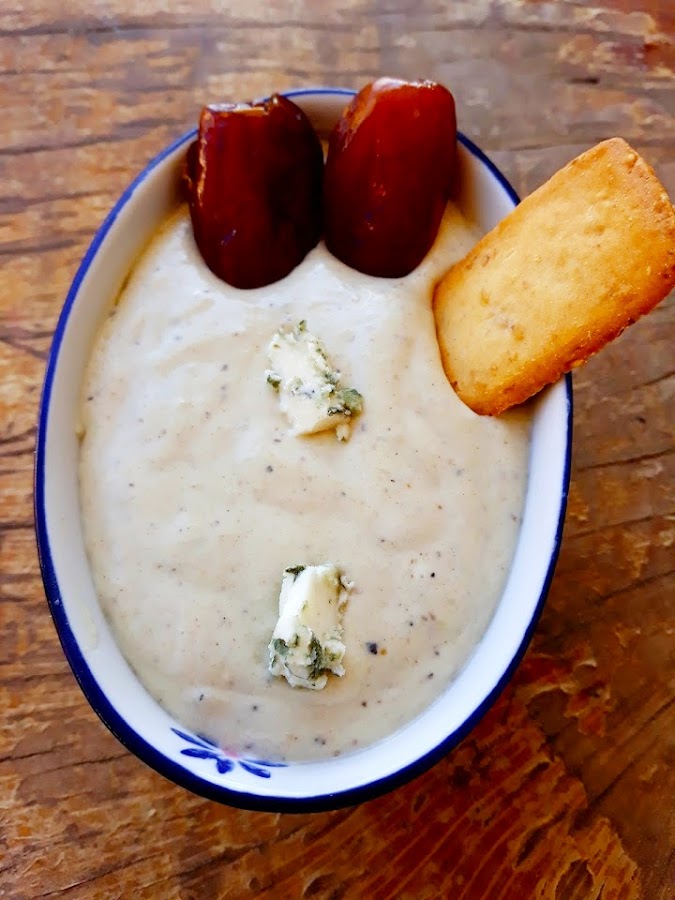 Esta receta la voy a acabar muuy pronto, si es que es súper fácil. Lo único que tenéis que hacer es quitarle los huesos a los dátiles, ponerlos en el vaso de la batidora, junto al yogurt y al queso, y batir. Le eché 50 ml de nata (crema de leche) líquida para que tuviera una textura más suave, aunque es opcional. En ésto de la cocina nada es cerrado, si te gusta muuuucho el sabor del roquefort (como a mí) le puedes echar más cantidad y jugar con la cantidad de dátiles para jugar con el dulzor... así de mágica es la cocina ;)
