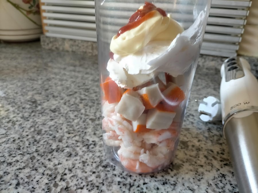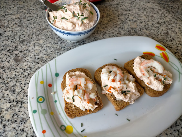 Este paté de gambas es una mezcla de las recetas que he visto por internet y que coinciden unos ingredientes con algunas y otros con otras. Éste que os traigo es fácil de preparar y la verdad es que está riquísimo. Necesitamos, para un bol pequeño como el de la foto: