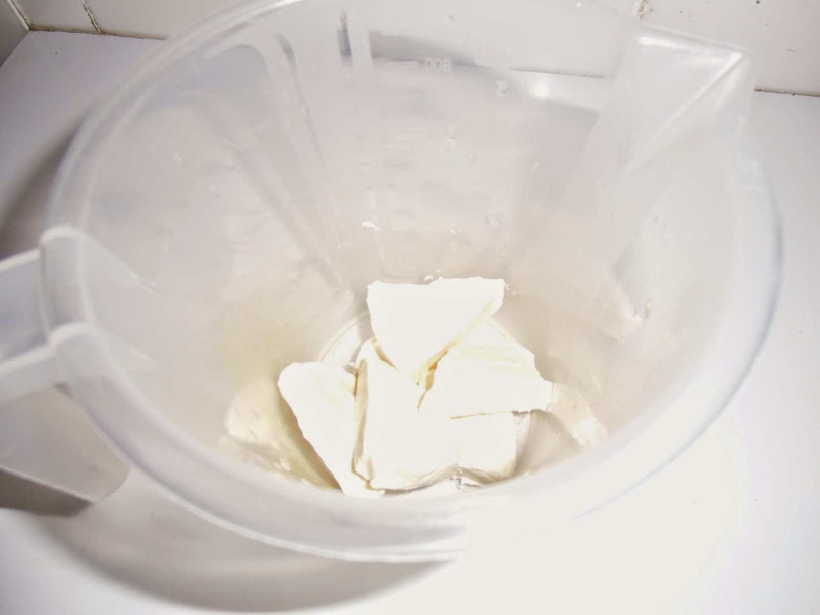 Echamos los quesitos en un vaso para batidora.