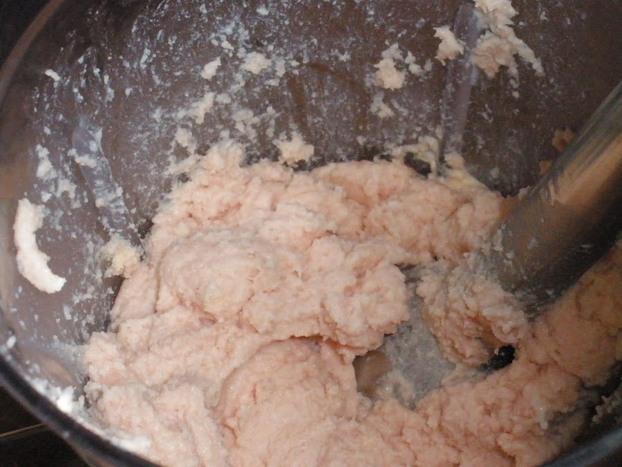 Pon los daditos de jamón de York y de huevo en el vaso de la batidora, añade los 100 ml. de nata (crema de leche) (yo utilicé nata (crema de leche) con un 18% de materia grasa), pero se puede hacer con cualquier tipo de nata (crema de leche).