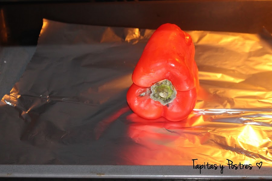 Asamos el pimiento en el horno. Podemos usar también pimientos asados en conserva.