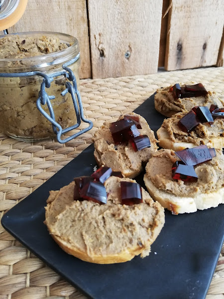 6. Cortaremos la gelatina en daditos y lo serviremos adorando el paté.