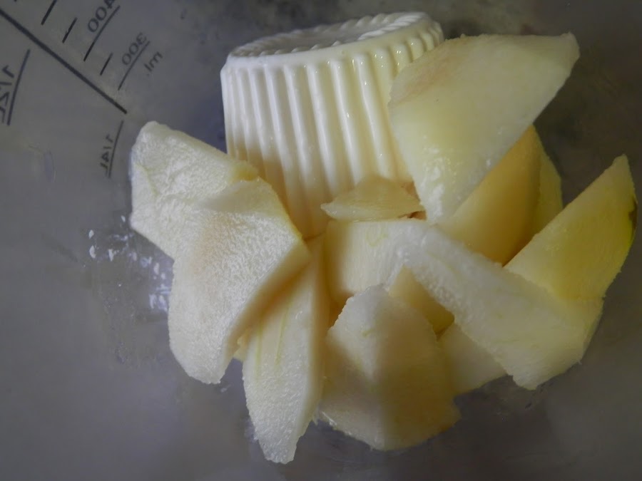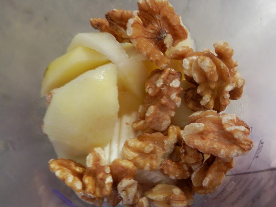 Introduce la pera y los quesos y los 40 gr de nueces en el vaso de la batidora.