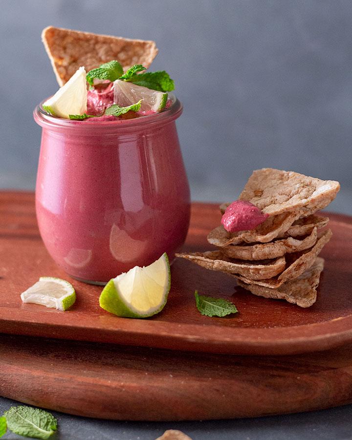 Paté de remolacha y menta, una combinación rica y saludable para dippear crudités, nachos o lo que vosotros queráis.