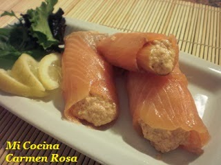O si gustan, pueden con unas lonchas de salmón y el paté preparar éstos rollitos?..
