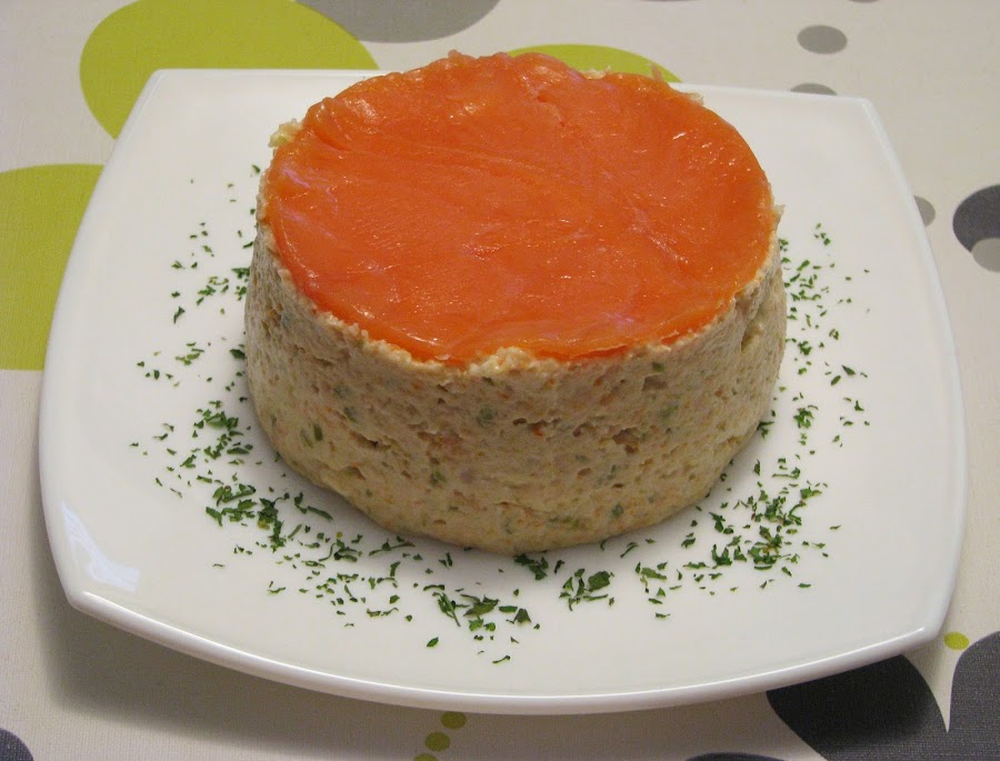 - Mezcla todo bien y con ayuda de un molde redondo, coloca la mezcla en el plato y por encima la loncha redonda de salmón.