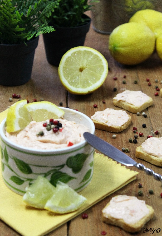 1. Cortamos el salmón en dados y lo ponemos en el vaso de la batidora o de un robot de cocina. Añadimos el queso, la mayonesa, la cebolla y una pizca de pimienta. Trituramos todo.
