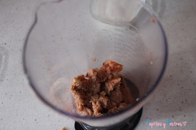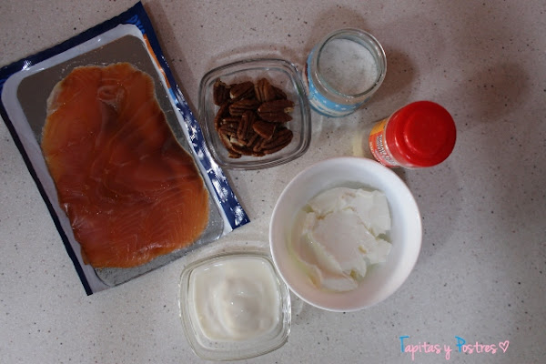 En realidad vamos a triturar todos los ingredientes, pero yo comencé triturando el salmón y las nueces primero.