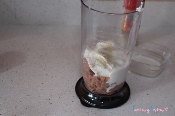 Luego añadimos la nata (crema de leche), el queso, la sal y la pimienta y batimos hasta tener una crema suave y homogénea.