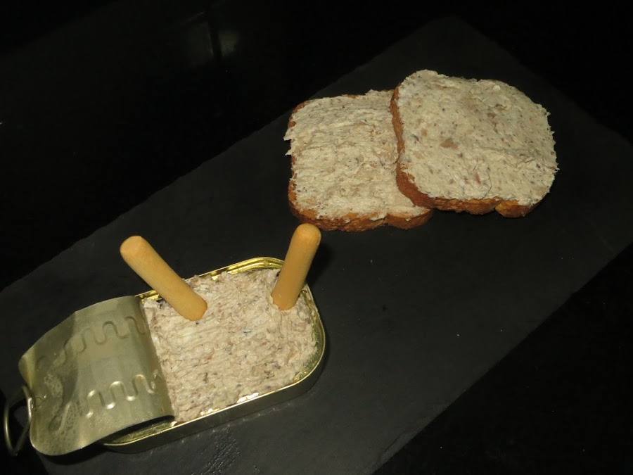 Lo colocáis en un cuenco o como he hecho yo en la misma lata de las sardinas bien limpia y lo acompañáis del pan que más os guste.