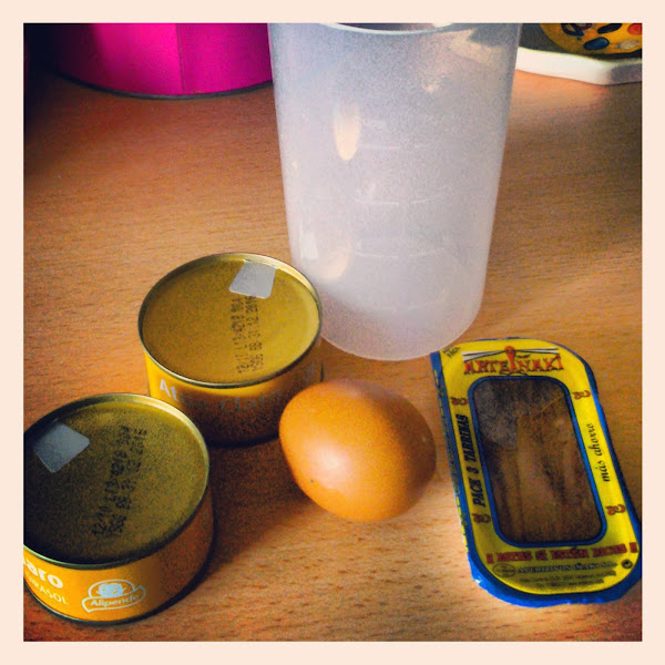1.Ponemos en el vaso batidor el huevo cocido picado,las 2 latas de atún una con el aceite y otra con el aceite escurrido y las anchoas poner la mitad de las anchoas y reservar las otras .