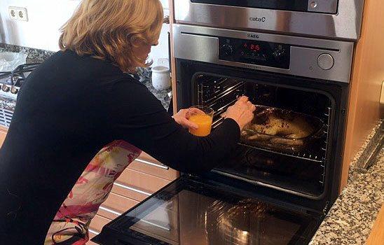 Tenemos el horno precalentado a 200º centígrados por arriba y abajo y cocemos el pato durante unos 40 minutos. Transcurrido este tiempo añadiremos el zumo de dos naranjas exprimidas y regaremos el pato con los jugos de la cocción de vez en cuando.