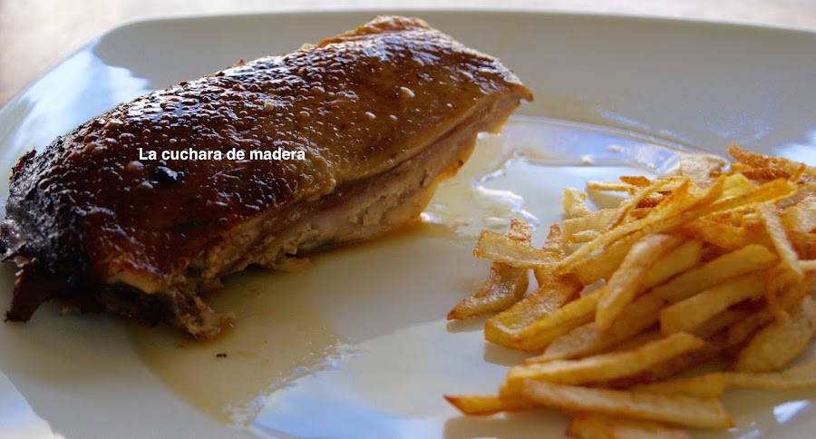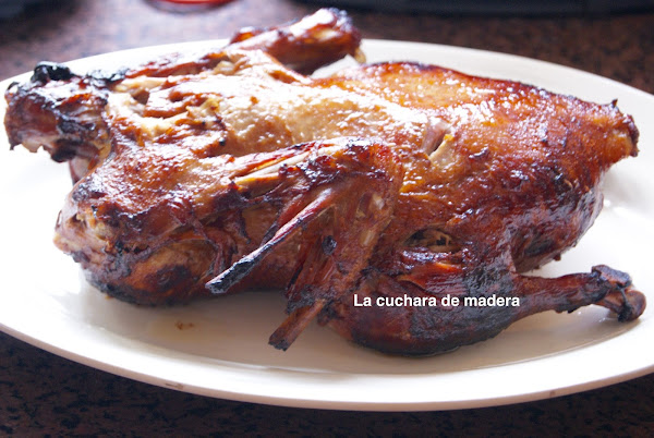 Con una brocha pintamos el pato con la salsa muy reducida, lo metemos al horno y repetimos el pintarlo varias veces. Lo dejamos al horno unos 45 minutos.
