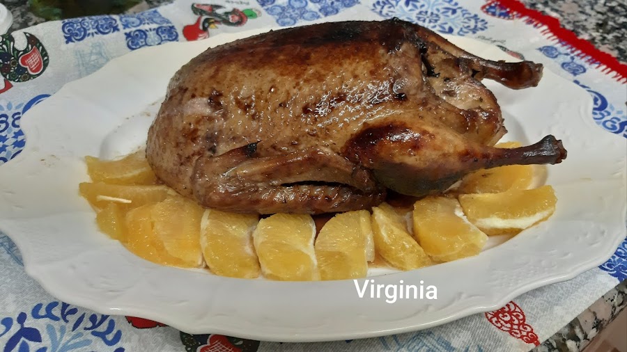 NOTA. Puede servir las raciones de pato ya trinchado y fileteado acompañado de la salsa y decorado con cebolleta en rodajas finas y gajos de naranja.