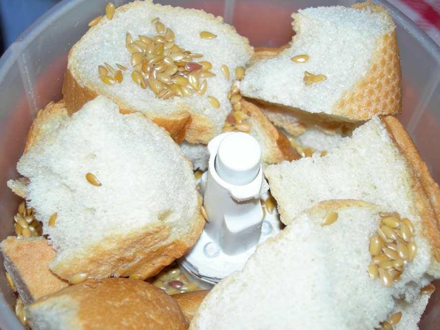 Yo siempre hago el pan rallado enriquecido siempre añado algo esta vez ha sido semillas de lino, tan beneficiosas para nuestra salud y para nuestro intestino.