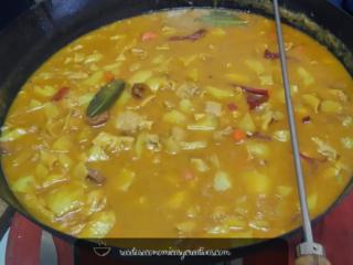 Mover todo unos minutos para mezclar sabores y cubrir todo con el caldo de la cocción y añadir otras 2 hojas de laurel. Si hiciese falta se añadiría agua.