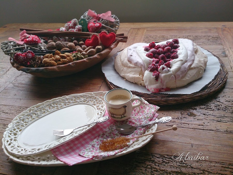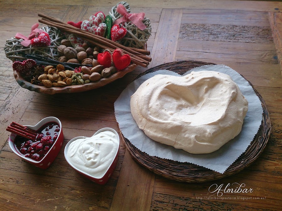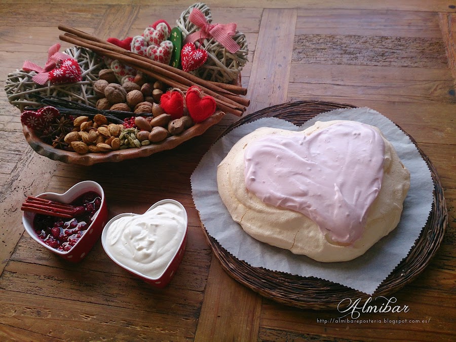 ...Pavlova en forma de corazón para celebrar San Valentín...