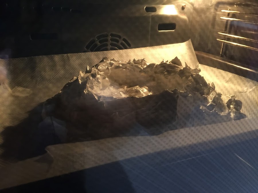 6. Horneamos 1h 30 minutos a 120ºC con aire. Pasado este tiempo sacamos del horno y dejamos enfriar por completo, mínimo 2 horas.