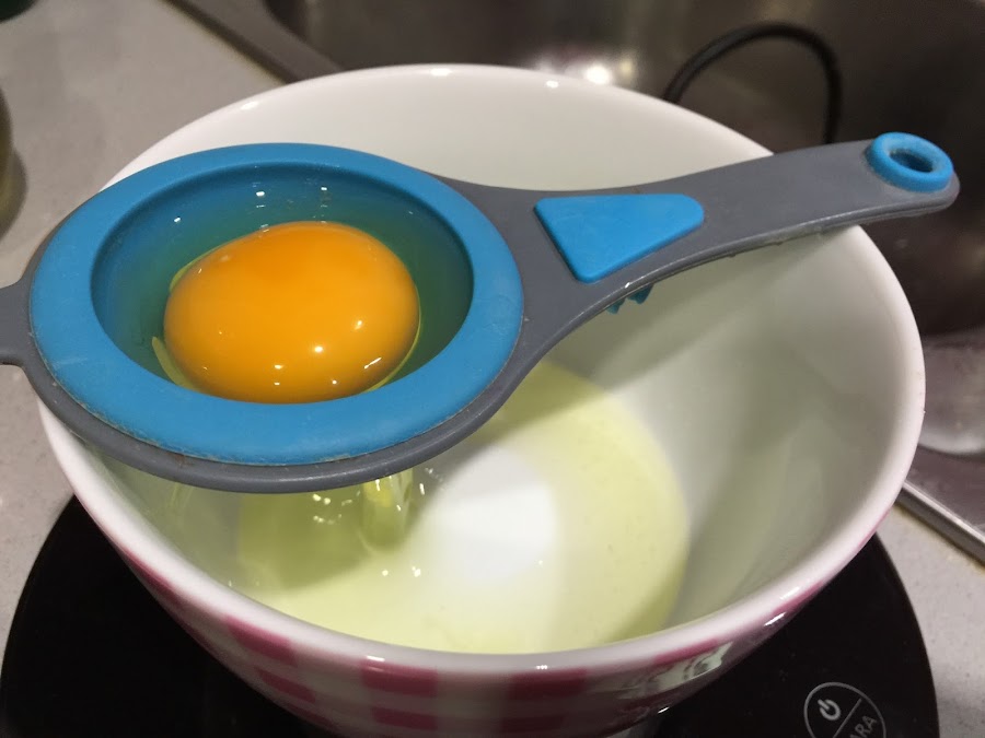 Paso a paso:1. El primer consejo que os voy a dar es que uséis claras de huevos frescos, y como siempre, si es de gallinas felices muchísimo mejor. Las claras que venden en bote nunca montan igual, por eso siempre para hacer merengue usar claras de huevos frescos. Separamos las yemas de las claras.