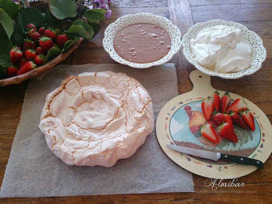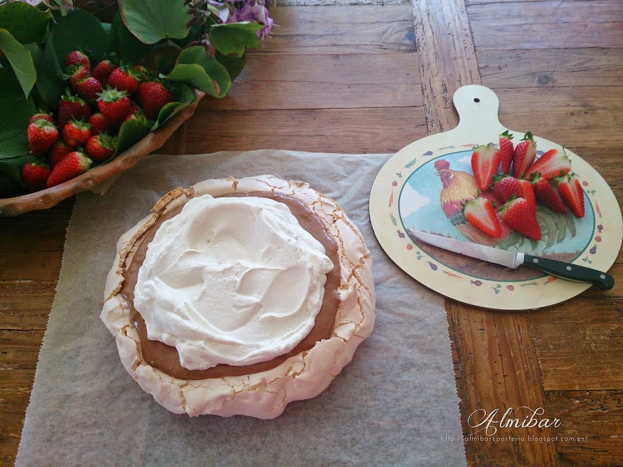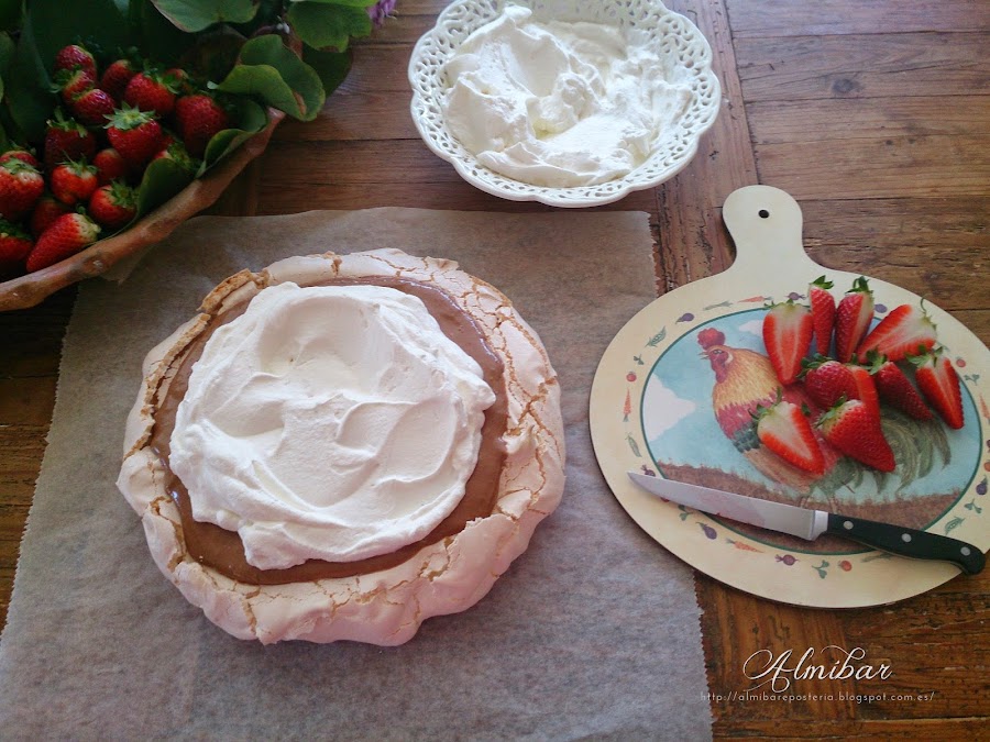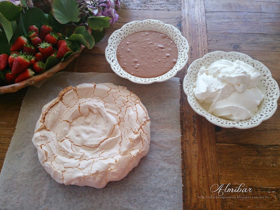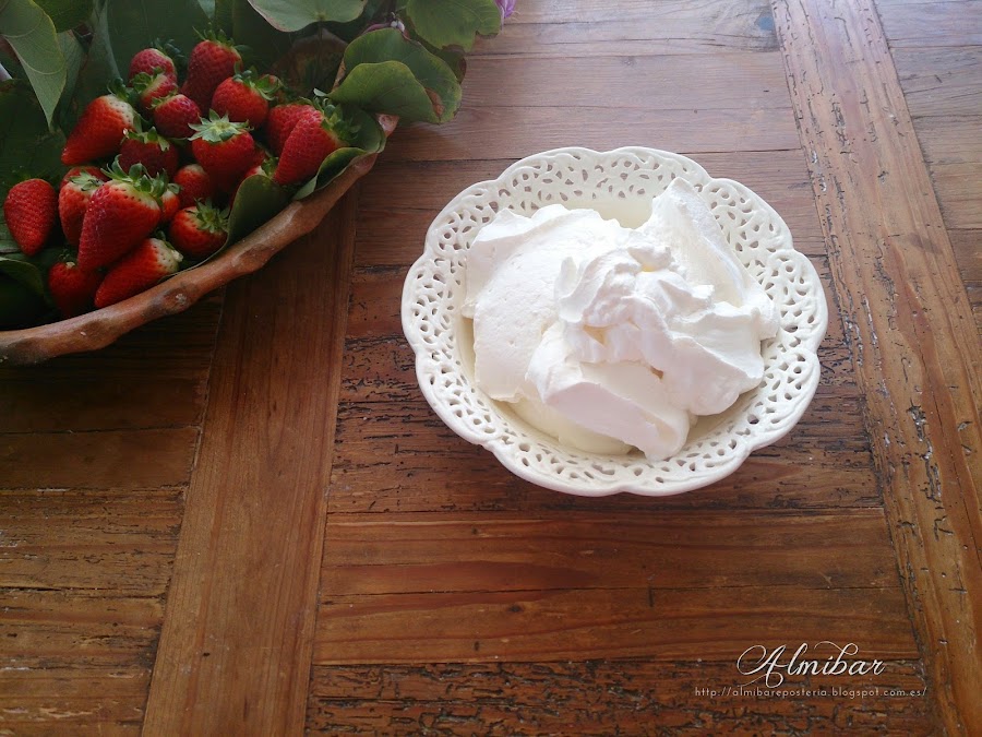 ...en casa nos encanta el merengue, la mousse de chocolate, la nata (crema de leche) y las fresas...