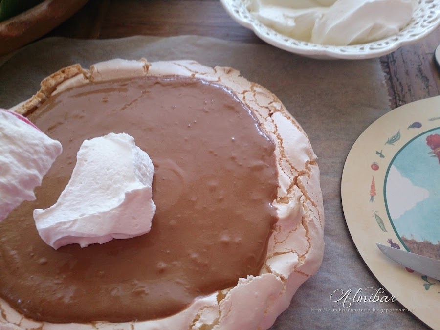 ...encima del merengue colocas con cuidado la mousse de chocolate...