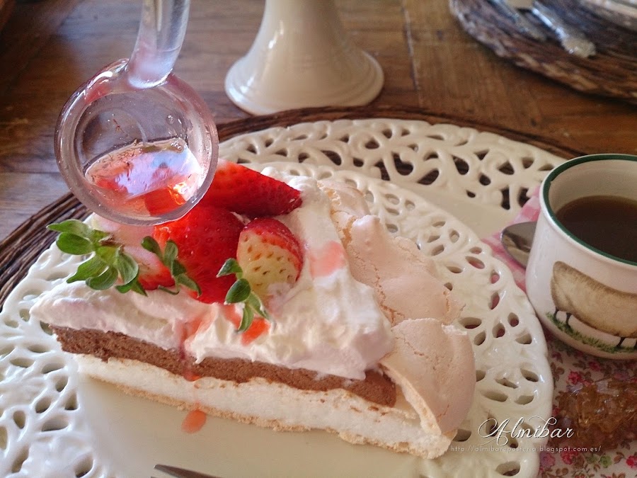 ...la combinación me encanta, un merengue dulce con una mousse y una nata (crema de leche) que casi no se aprecia su dulzura...