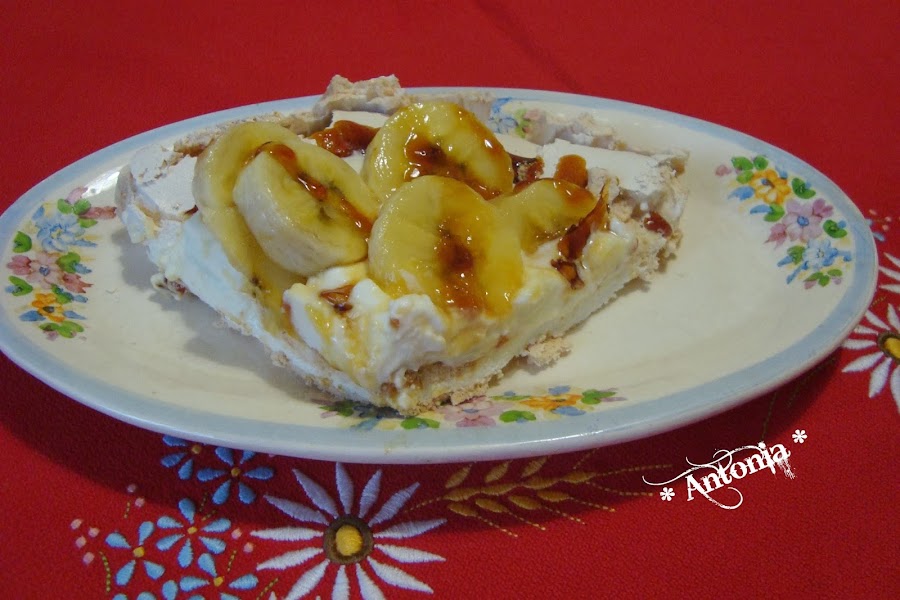 PAVLOVA DE PLÁTANO MERENGUE NATA (crema de leche) Y CARAMELO