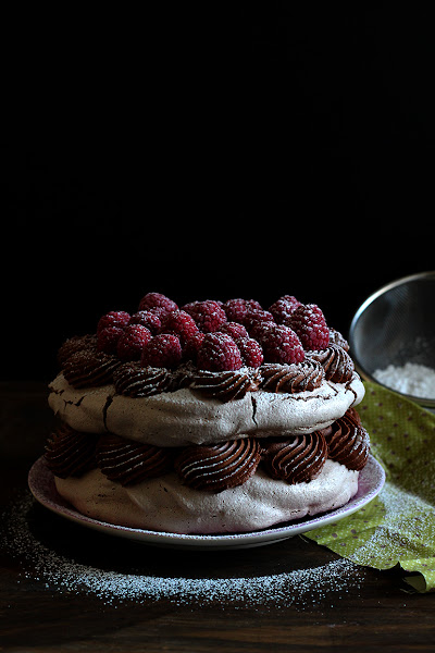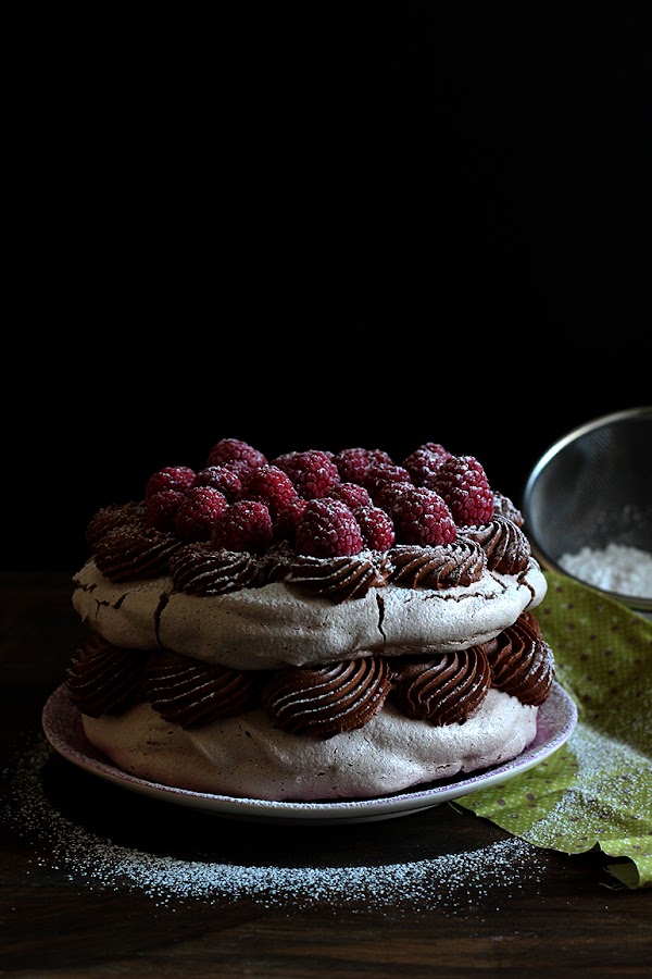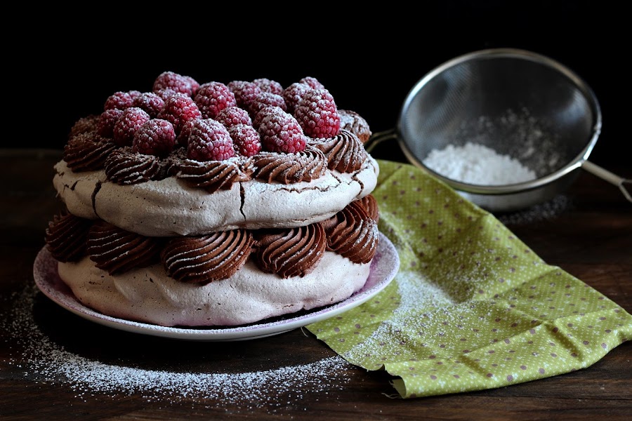 PAVLOVA DE CHOCOLATE, CANELA Y FRAMBUESAS