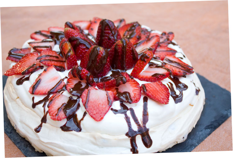 Puedes hacer una Pavlova de chocolate añadiendo 3 cucharadas de cocoa al merengue listo. (Queda buenisimo!)