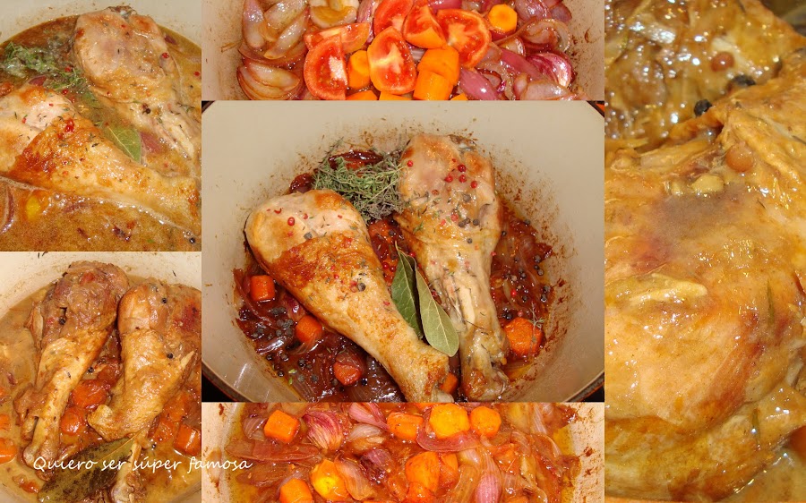 En una cazuela, con aceite de oliva, doráis los muslos por todos los lados a fuego suave. Retirad y a continuación dorar la cebolla y los dientes de ajo enteros y sin pelar. Aplastar un poquito antes de añadir al sofrito.
