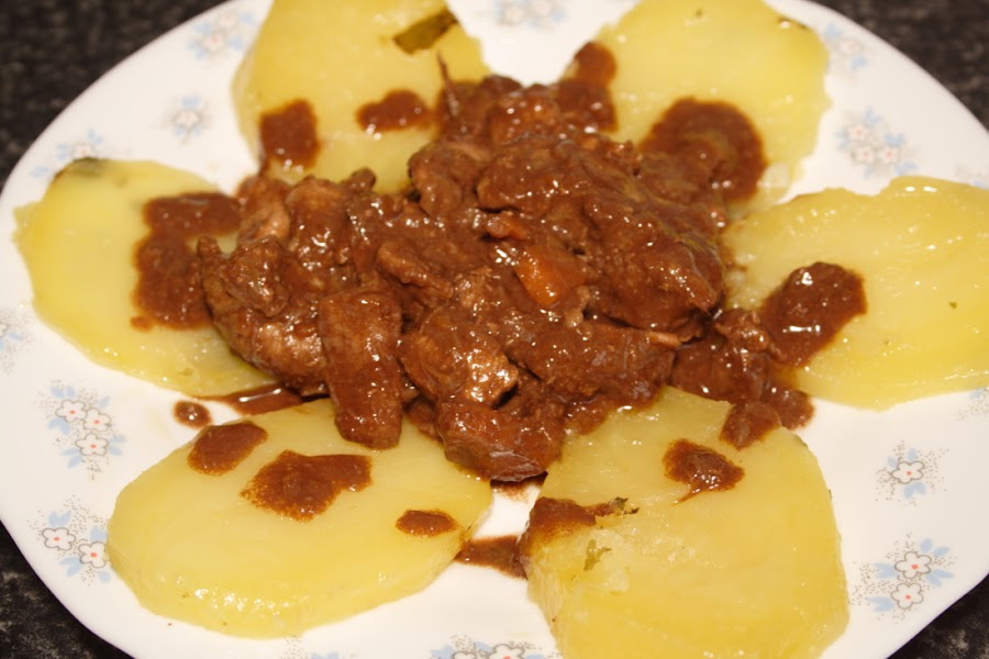 Y servimos. He acompañado este plato con unas patatas asadas "a mi manera" (receta que también aparece en el blog.