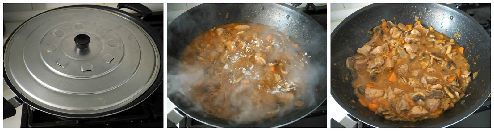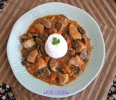 - Como a mitad o algo más de la cocción añadimos media cucharadita (escasa) de goma guar o maizena (1 cucharada) o el espesante que queramos, y removemos bien. Según el líquido que quede, podemos dejar destapado los últimos minutos de cocción.