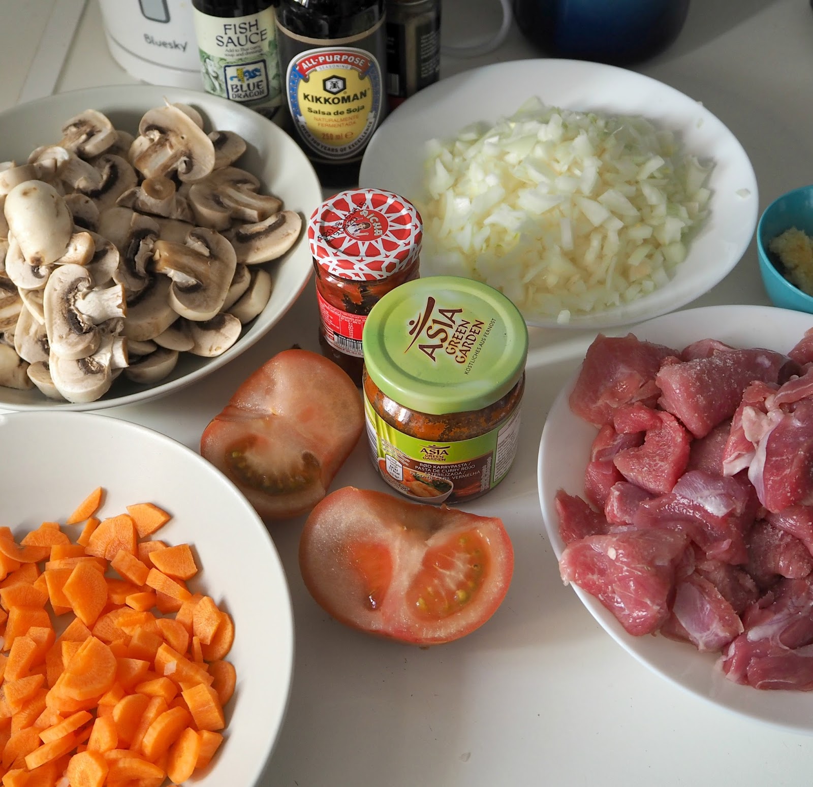 2 cucharaditas de pasta de curry rojo tailandés