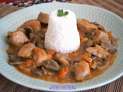 - Cuando el guiso esté listo, la salsa haya cogido espesor y la carne y verduras estén hechas, apagamos y retiramos del fuego. Dejamos reposar unos minutos y servimos. Yo lo presenté con arroz basmati cocido que, mezclado con la salsa quedó impresionante. Este es un plato que no queda muy picante, sabroso, nada más. Muy completo, de textura muy agradable y aroma y sabor deliciosos que creo gustará a todos. Un plato original y delicioso.