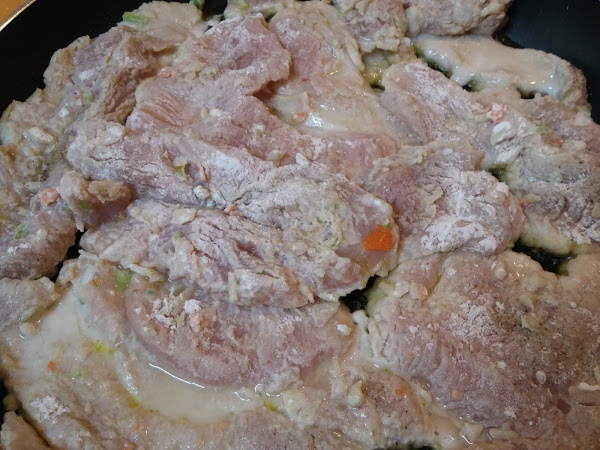 Transcurrido el tiempo, escurrimos los filetes, reservando la marinada. Los salpimentamos, los pasamos ligeramente por harina y los freímos en una sartén amplia con un chorrito de aceite.