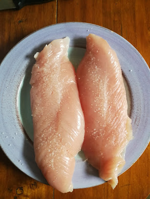ELABORACIÓN: Limpiamos los solomillos de pavo, le pondremos sal unos 10 minutos antes, mientras preparamos las verduras.
