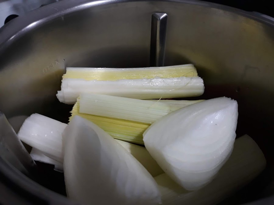 2.- Echamos el aceite por el bocal y sofreímos 10 minutos a 120º, velocidad cuchara.