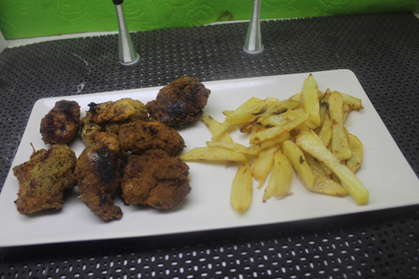 Cuando los daditos cambien de color los retiramos y dejamos escurrir su excedente de aceite.